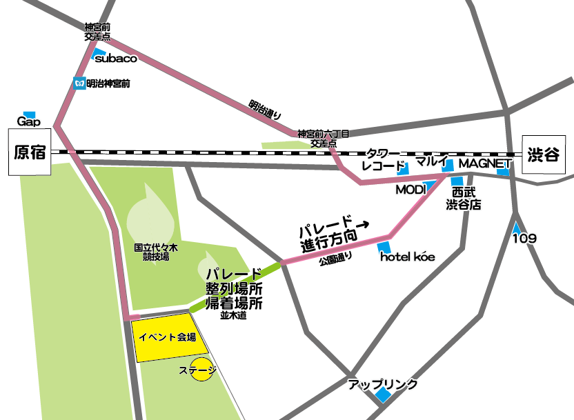 2.直接代々木公園のパレード整列場所の並木道にお越しください!